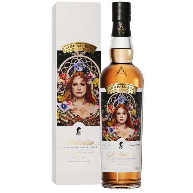 With today’s arrival of the third edition of the Hedonism Limited Annual Release, the award-winning Compass Box, once again brings one of modern whisky’s most iconic expressions to life – uniting art, whisky and muse in a singular release. At the heart of the 2026 release is a new interpretation of the Hedonism Muse – an image that has become one of the most distinctive and enduring symbols in modern Scotch whisky. Compass Box enlisted globally acclaimed artist Emma Hack to bring the 2026 Muse to life, creating a live action portrait featuring A-List actress Karen Gillan at its heart – the first time a known face has stepped into the role.